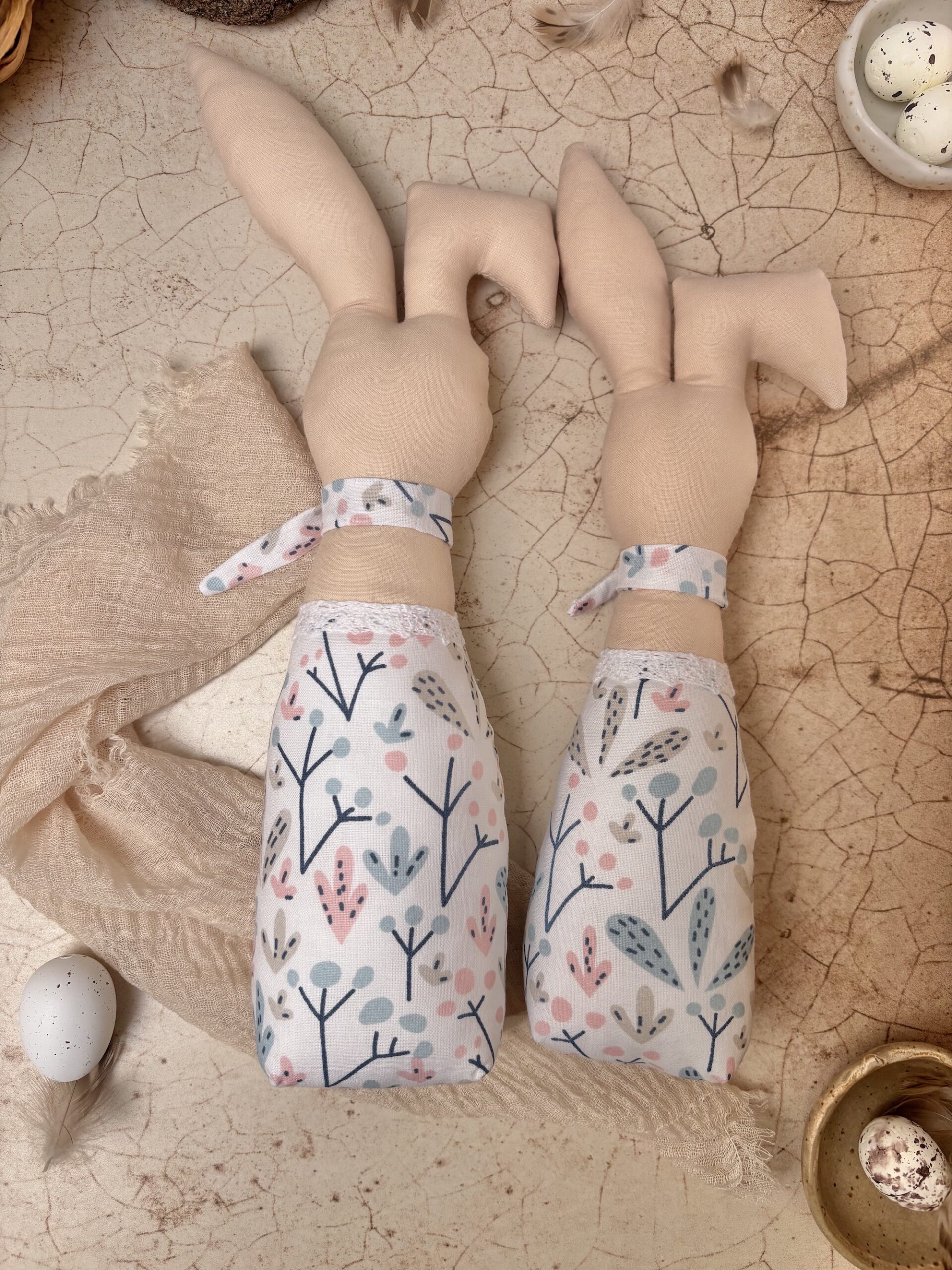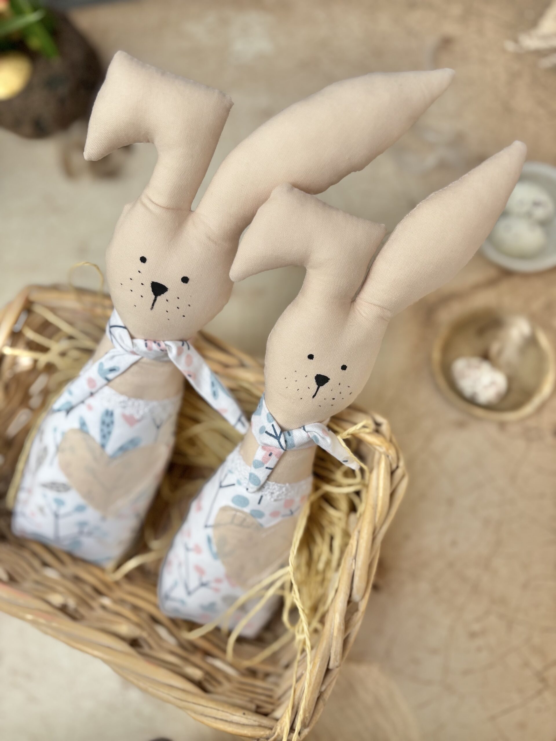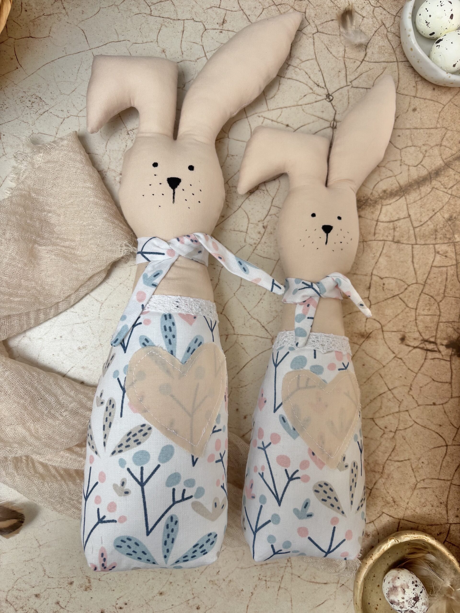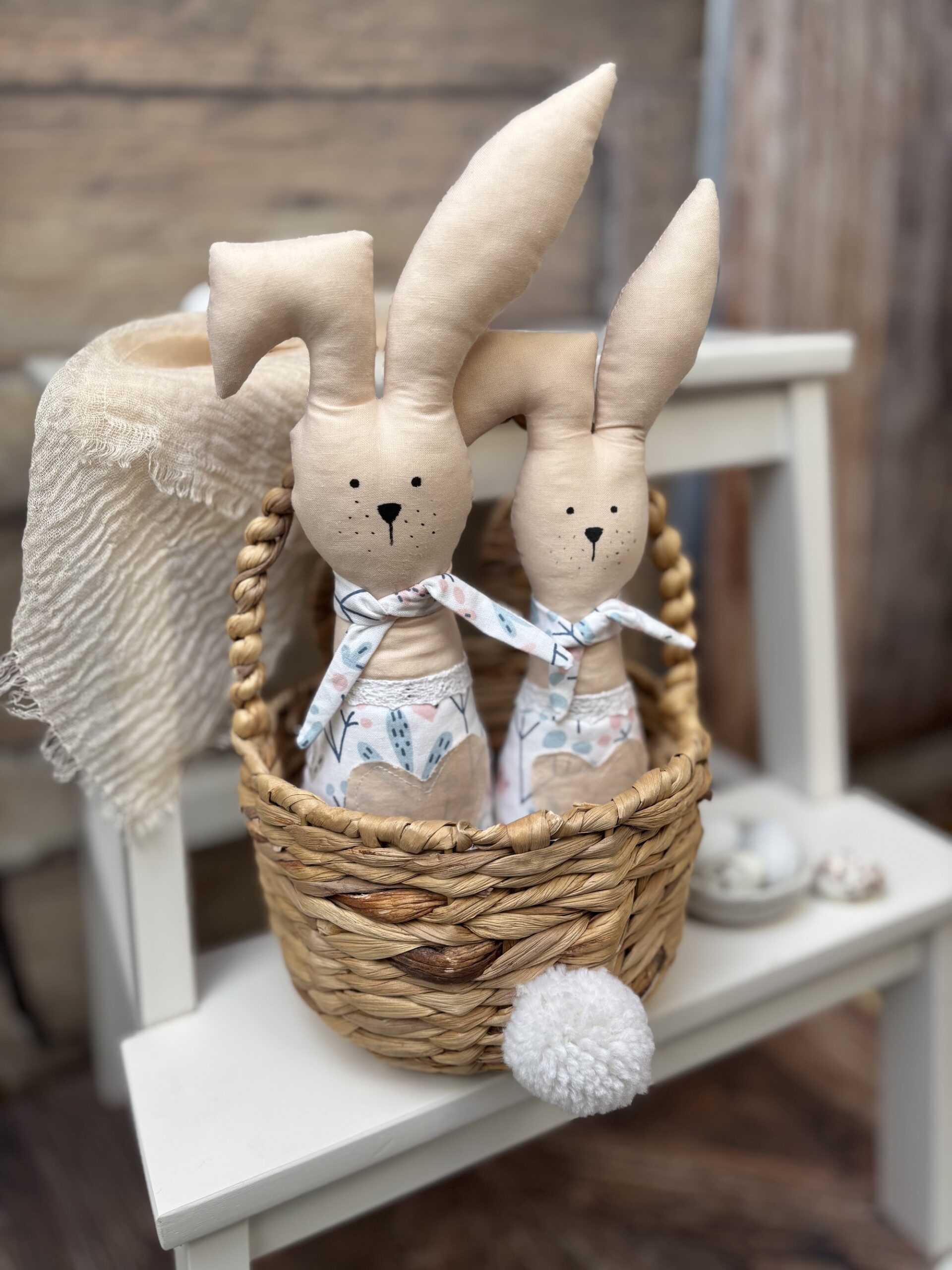 Dekoracyjne zające wielkanocne do postawienia na półce, do dekoracji sypialni, do ozdobienia stołu wielkanocnego.